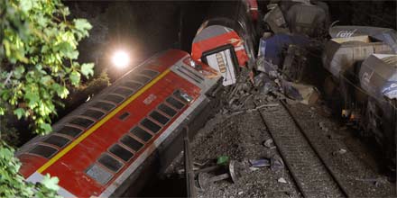 Der Güterzug war auf gerader Strecke entgleist und hatte einen entgegenkommenden Regionalzug gerammt. Dieser fiel nach rechts auf die Seite. Der Lokführer wurde schwer verletzt, 15 der insgesamt 50 Fahrgäste leicht. Warum der Güterzug entgleiste, war zunächst völlig unklar.