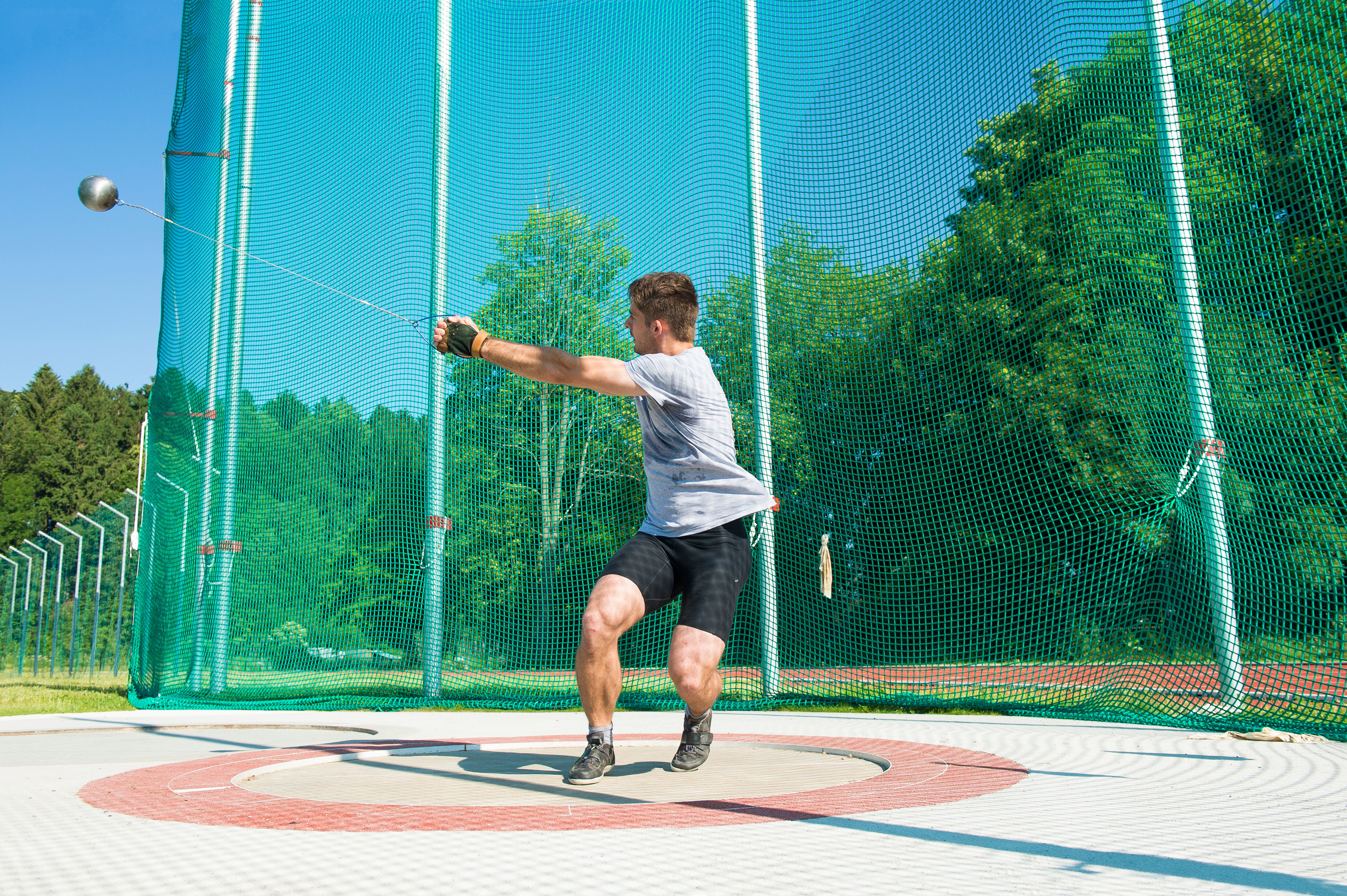Beim Hammerwurf hat die an einer Kette mit Griff befestigte Kugel bei Männer-Wettbewerben ein Gewicht von sieben Kilogramm, bei den Frauen sind es vier Kilo. Unfälle beim Hammerwurf sind selten, da der Abwurfbereich mit Absperrungen geschützt ist.