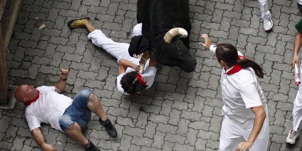 Kampfstiere verletzten zwei britische Teilnehmer bei der Stierhatz.