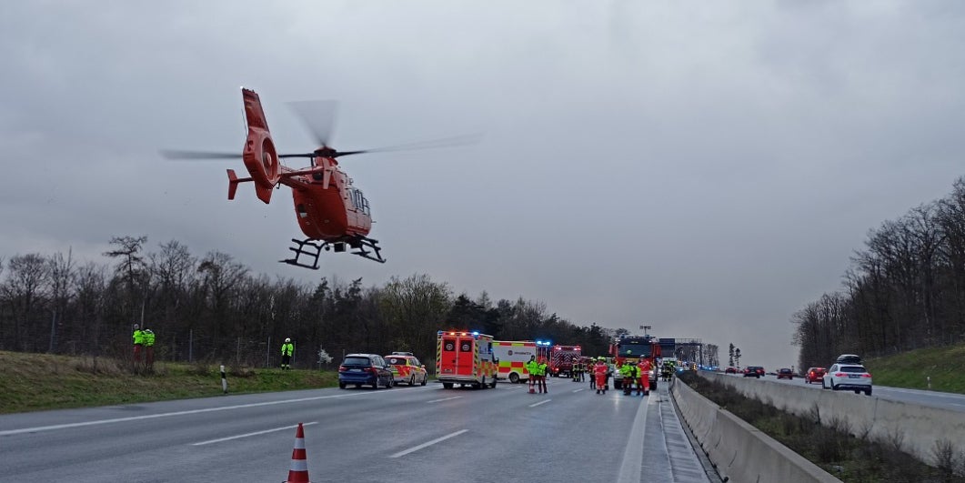 Polizei, Feuerwehr und Rettungskräfte waren mit einem Großaufgebot im Einsatz. Laut dem Bayerischen Rote Kreuz landeten drei Rettungshubschrauber auf der Autobahn. Rund 30 unverletzte Unfallbeteiligte wurden den Angaben zufolge von geschulten Helfern betreut. Auch für die Einsatzkräfte wurde eine Betreuungsstelle eingerichtet. Der Sachschaden dürfte sich nach ersten Angaben der Polizei auf eine mittlere sechsstellige Summe belaufen.