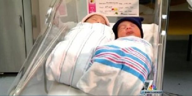 Ungewöhnliche Zwillingsgeburt in den USA: Im Bundesstaat Kalifornien ist ein Zwillingspaar mit unterschiedlichen Geburtsjahren auf die Welt gekommen - zu Silvester. Maribel Valencia aus San Diego brachte vor Mitternacht am Silvesterabend 2015 eine Tochter mit dem Namen Jaelyn auf die Welt; in den ersten Minuten des Neujahrsmorgens 2016 wurde dann Jaelyns kleiner Bruder geboren.