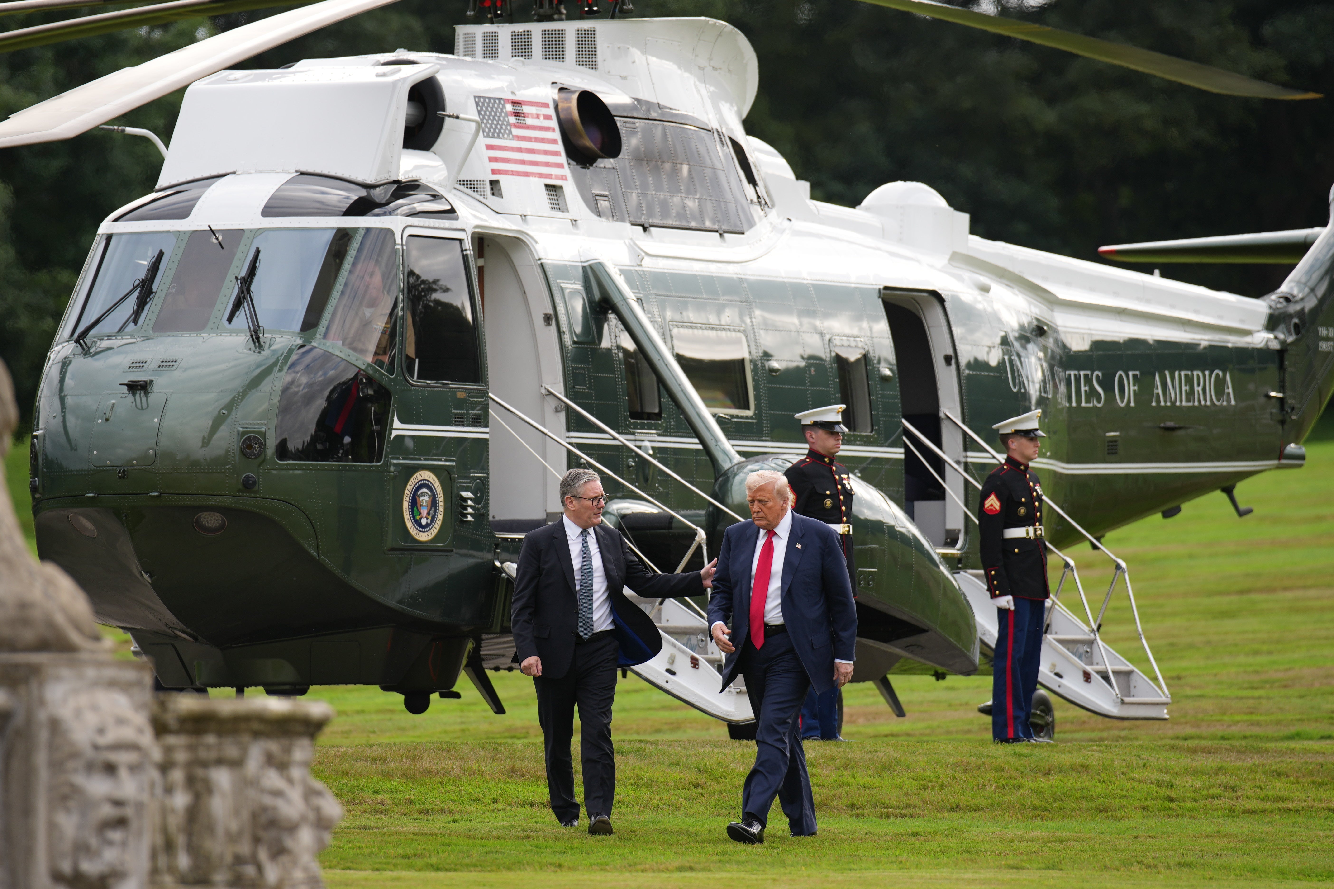 "Marine One" war am Landsitz des britischen Premierministers Keir Starmer gestartet, wo Trump und der Premier zum Abschluss des Staatsbesuchs eine Pressekonferenz gegeben hatten. Trump war am Dienstag im Vereinigten Königreich angekommen und am Mittwoch von König Charles III. empfangen worden.